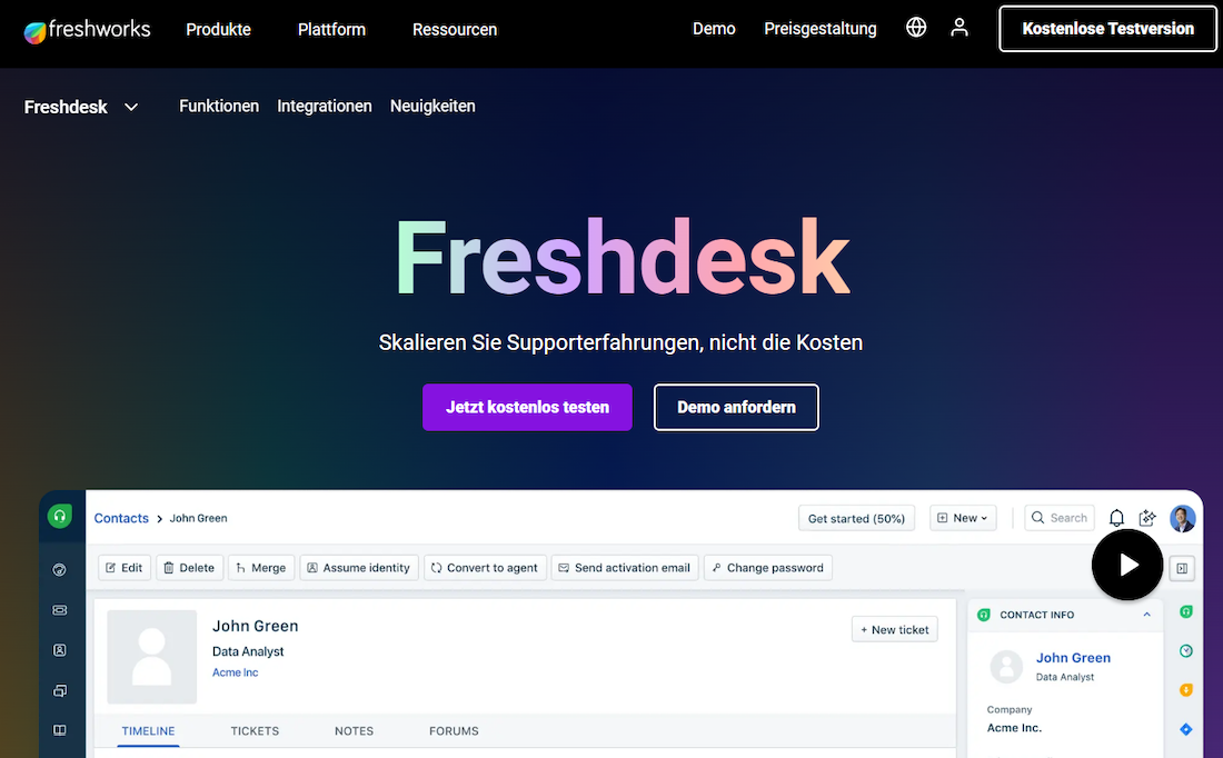 Mit Freshdesk können Sie Ihren Kund:innen wie mit einigen anderen Komplettlösungstools eine konsistente und personalisierte Kundenservice-Erfahrung über mehrere Kanäle hinweg bieten. Darüber hinaus bietet Freshdesk umfangreiche Berichts- und Analysefunktionen, mit denen die Erfolge im Kundenservice gemessen werden können.